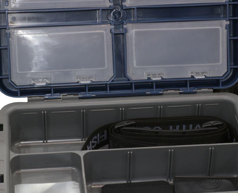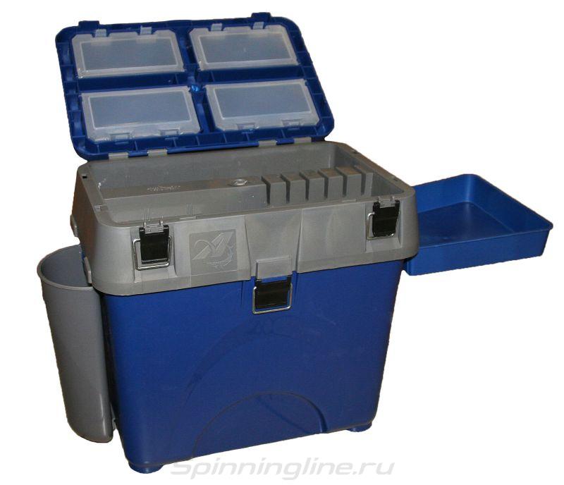 Удобный ящик для зимней рыбалки. Изготовлен из морозоустойчивого пластика. Комплектуется навесным стаканом и лотком-столиком. В крышке ящика предусмотрены четыре отделения с прозрачными крышками для мелких принадлежностей. Среднее отделение ящика имеет съемные перегородки для более удобного хранения принадлежностей. Большое отделение также имеет съёмную перегородку. Пластина из пенополиэтелена на крышке ящика не впитывает влагу и обеспечивает комфортное сидение. Изделие комплектуется регулируемым плечевым ремнем.Габаритные размеры: